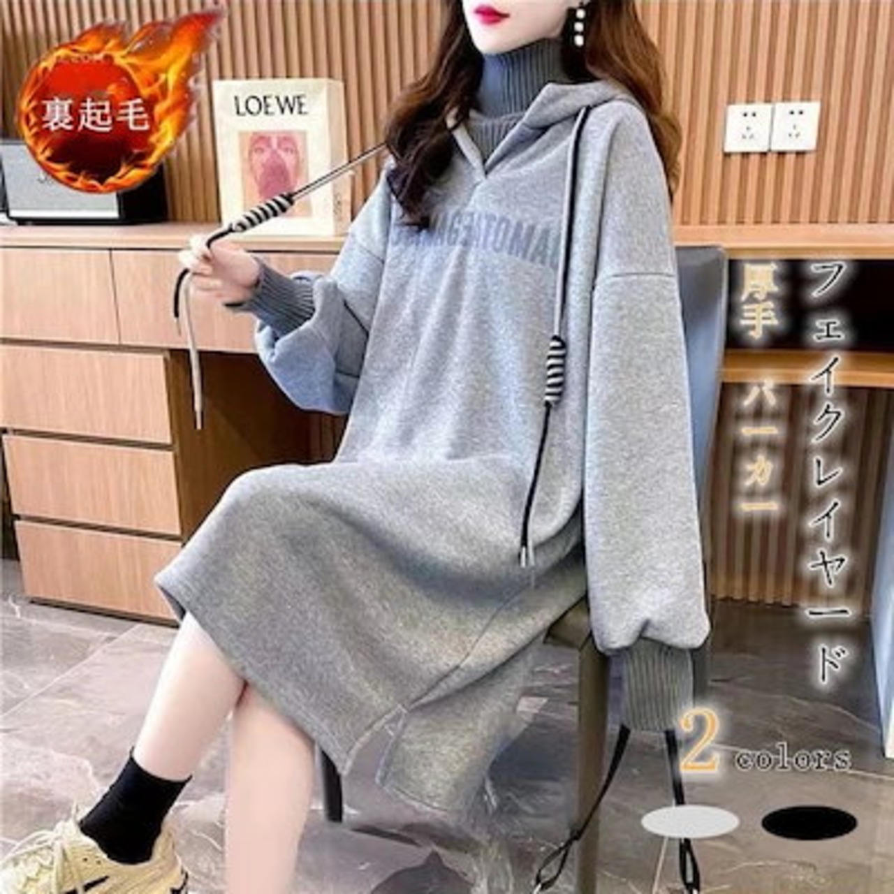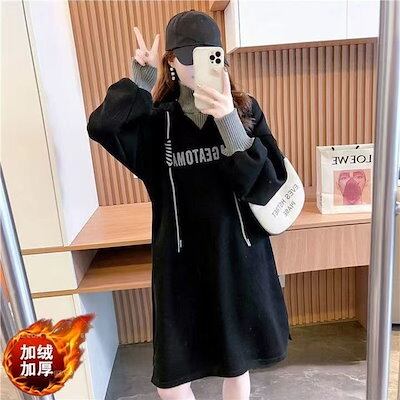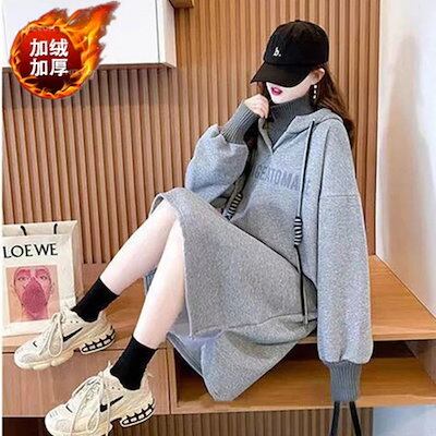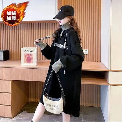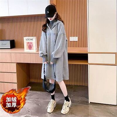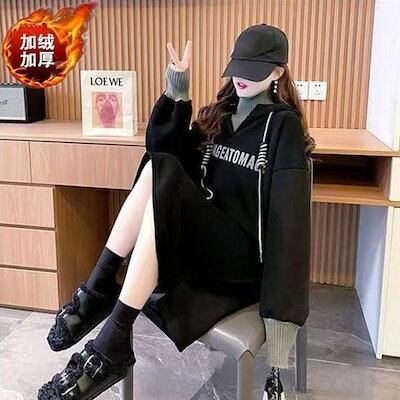 レディースパーカー ファッションカップル 長袖 裏起毛 フェイクレイヤード 暖かい スウェット 大きいサイズ ワンピース 可愛い? スウェット トレーナー 韓国
