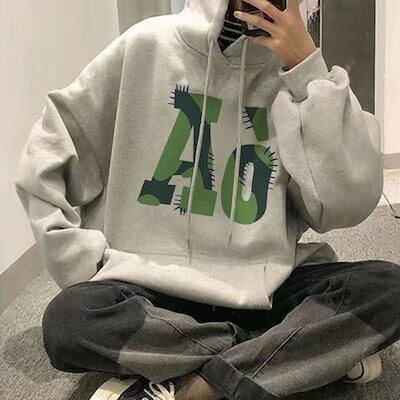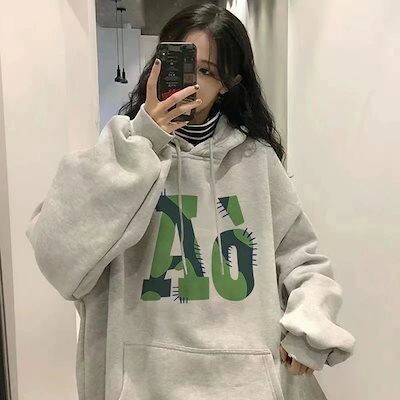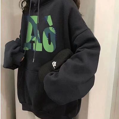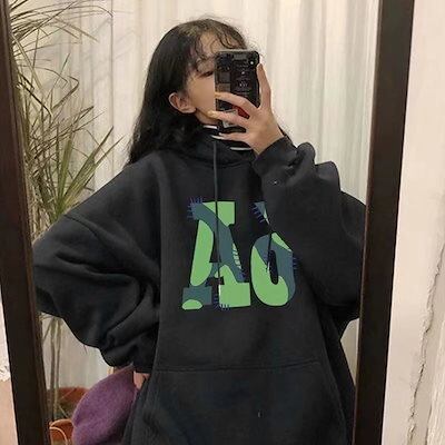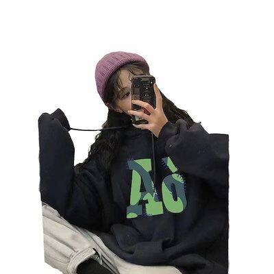 レディースパーカー ファッションカップル 長袖 アメリカレトロな黒い帽子付き オーバーサイズのデザイン感のあるカップル服 スウェット トレーナー 韓国