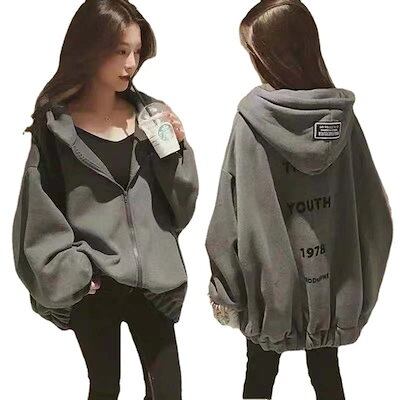 レディースパーカー ファッションカップル 長袖 裏起毛 にベルベットガーディアン ゆるい中長型原宿風 コート スウェット トレーナー 韓国