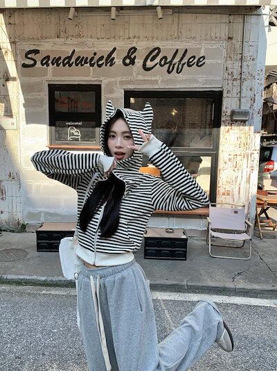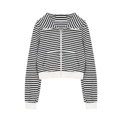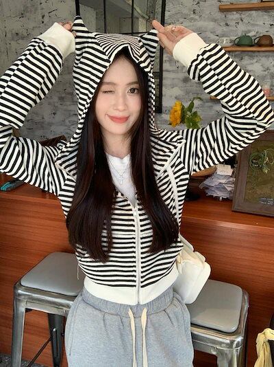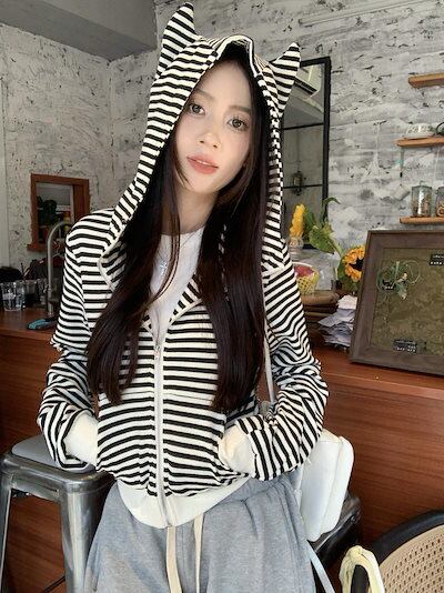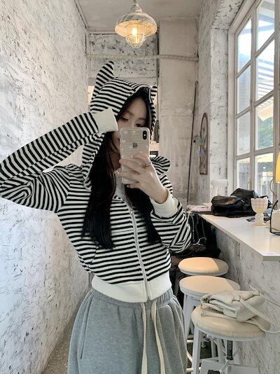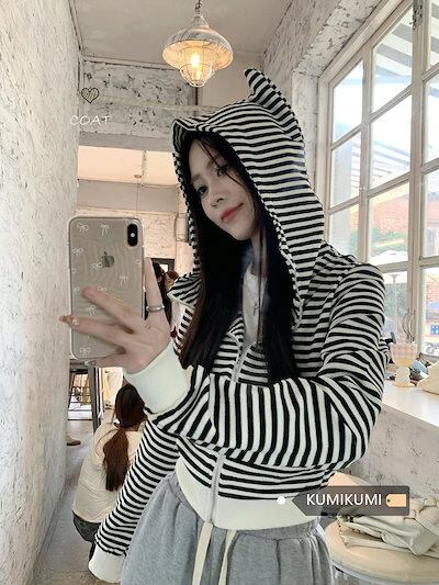 2024秋冬トップスかわいいパーカー フード付き韓国風長袖ゆったり細見え白黒おしゃれレトロチャックシルエット甘め大人っぽ韓国フルサイズファッション系ルーズレディースサイドお出かけ学生通学トラック羽織り