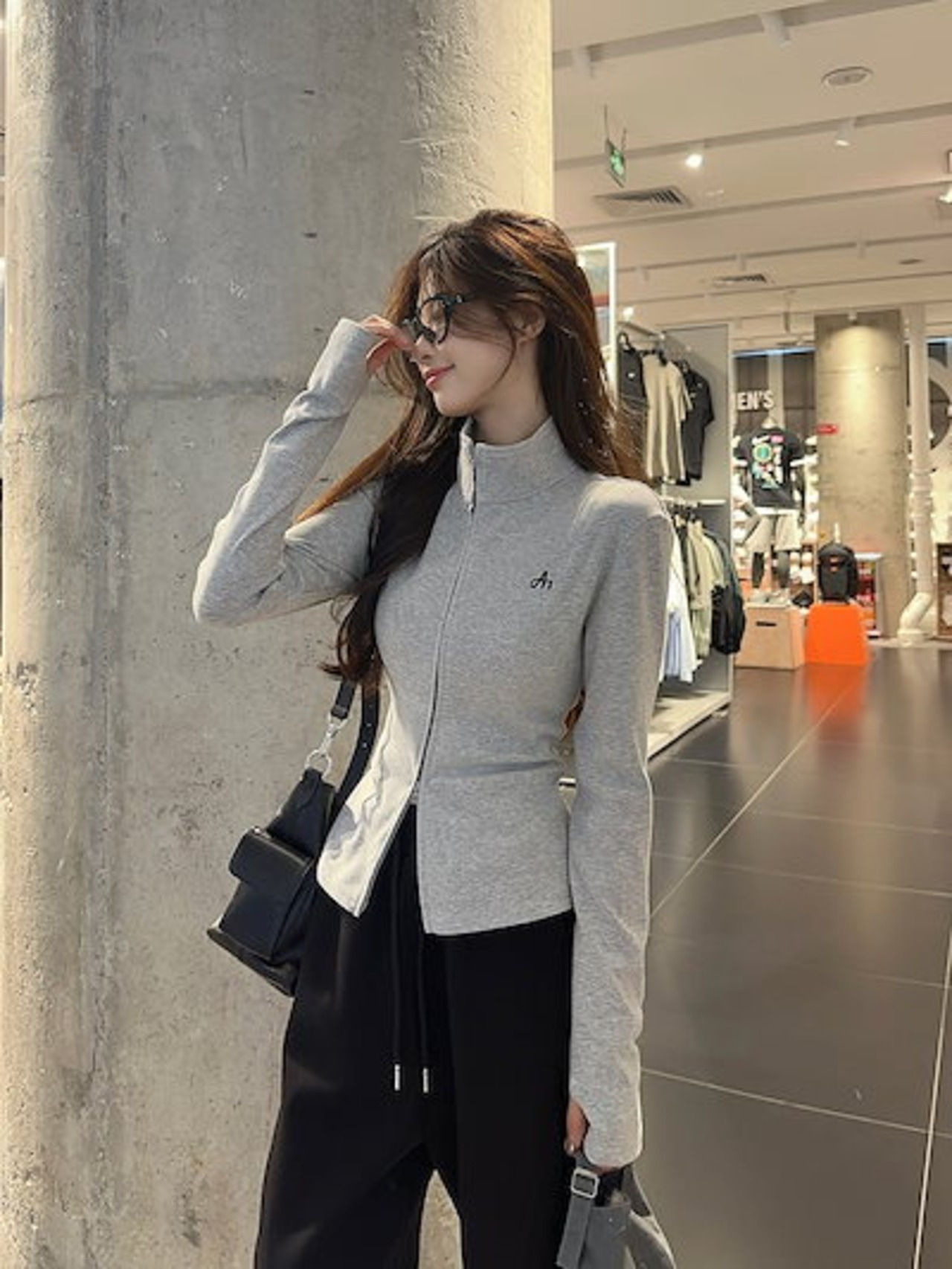 2024 秋冬トップスかわいいパーカーハイネック韓国風長袖ゆったり細見え白黒おしゃれレトロチャッシルエット甘め大人っぽ韓国ダブルサイズファッション系ルーズレディースサイドお出かけ学生通学トラック羽織り