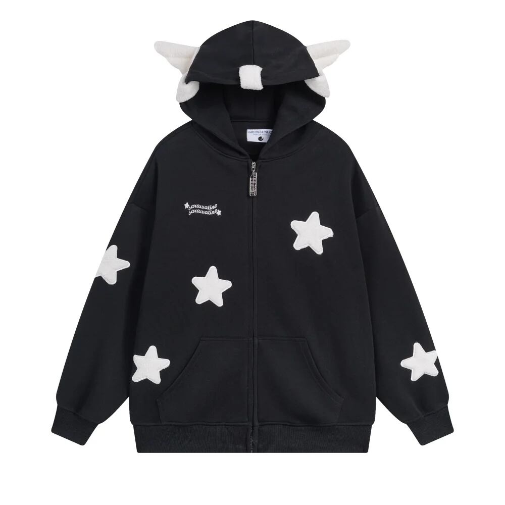 女性用長袖スウェットシャツ,フード付きスウェットシャツ,和風,カワイイコート,ジッパースターカーディガン,愛らしい,y2k,スター,秋 パーカー ジャージ y2k T240908170632_01