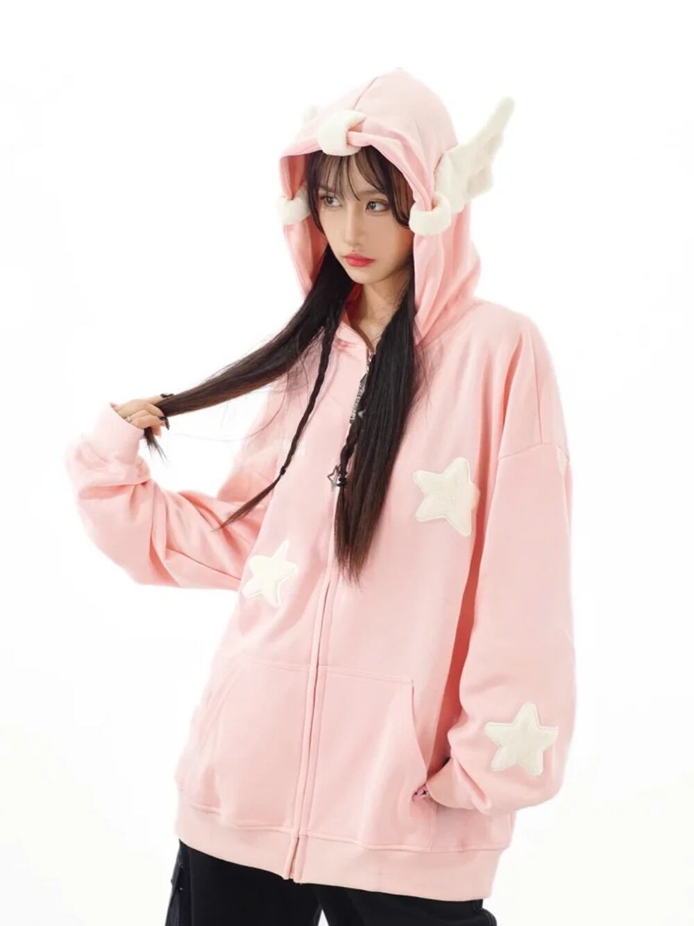 女性用長袖スウェットシャツ,フード付きスウェットシャツ,和風,カワイイコート,ジッパースターカーディガン,愛らしい,y2k,スター,秋 パーカー ジャージ y2k T240908170632_02