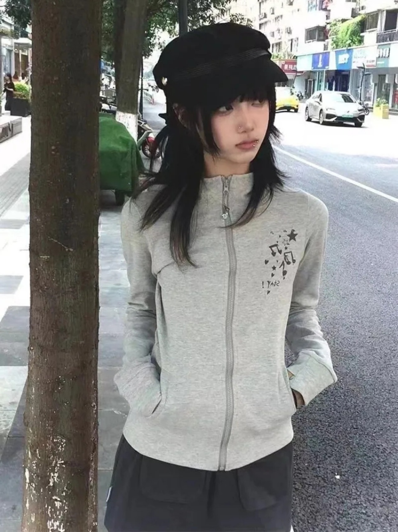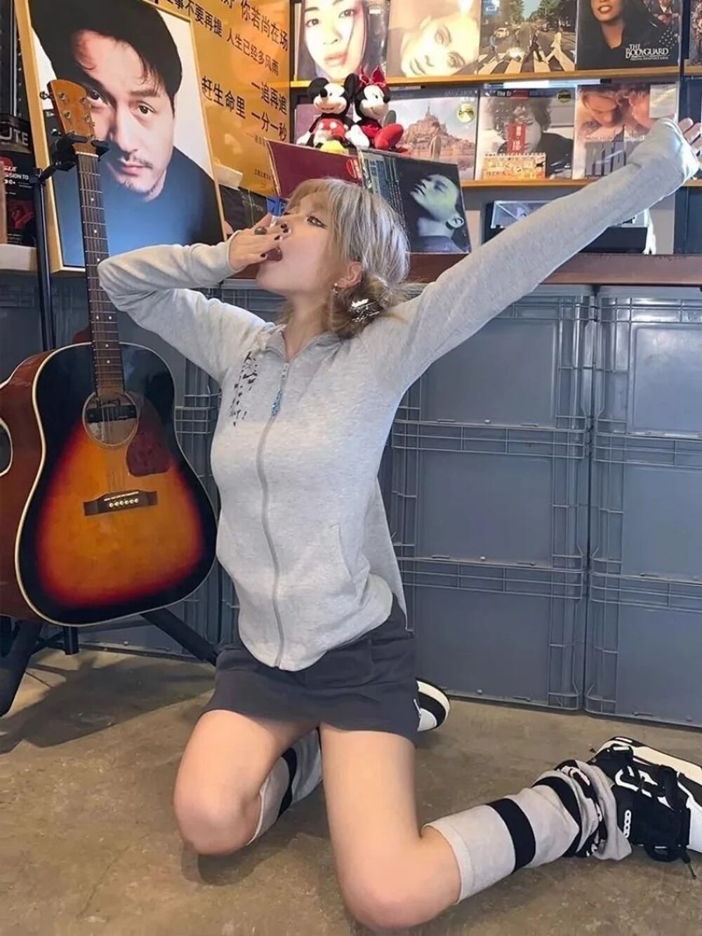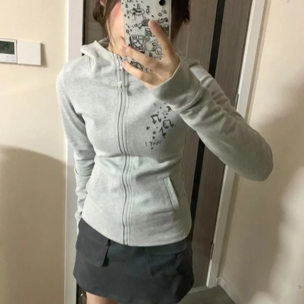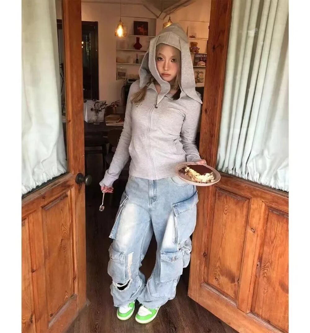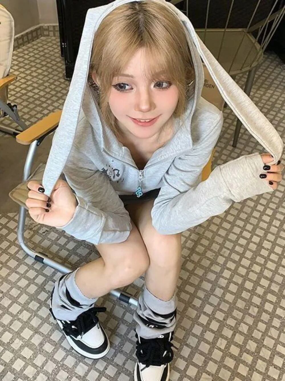 女性用カワイイウサギ耳フード付きスウェットシャツ、ジップアップパーカー、長袖、ジッパーカーディガンコート、バニーイヤー、y2k、e-girl、春、新品 パーカー ジャージ y2k T240908170659_01
