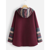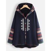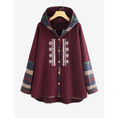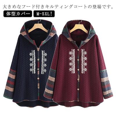 キルティングコートコートレディース秋冬ジャケットカーディガンアウター長袖フード付きエスニック柄羽織体型カバーロング森ガール大きいサイズゆったり着痩せ厚防寒冬服冬物カジュアル