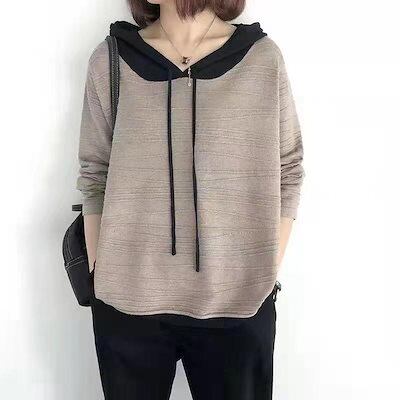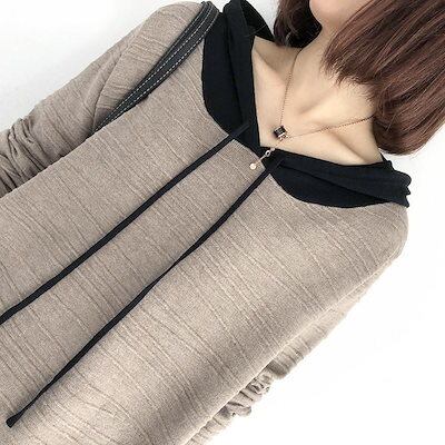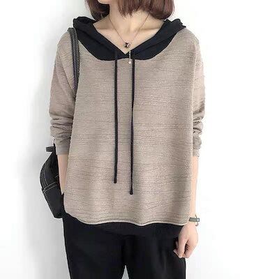 ニットパーカーレディースニットセーター厚秋フード付きニットパーカーラグランスリーブセーターカジュアルニットトップスお洒落