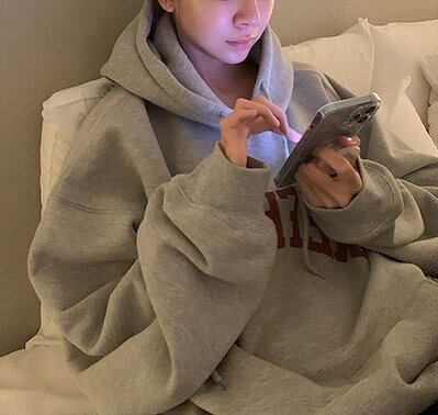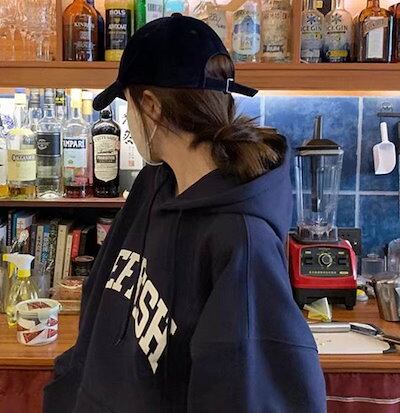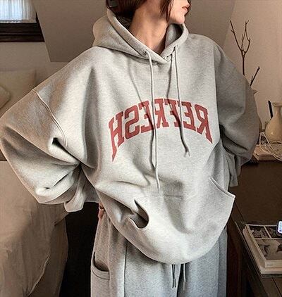 英字 ロゴ ルーズ パーカー レディース トップス プルオーバー 部屋着 丈長 ドロップショルダー フード オーバーサイズ ストリート ポケット ドロスト 厚手 裏起毛 かわいい 大人可愛い シンプル