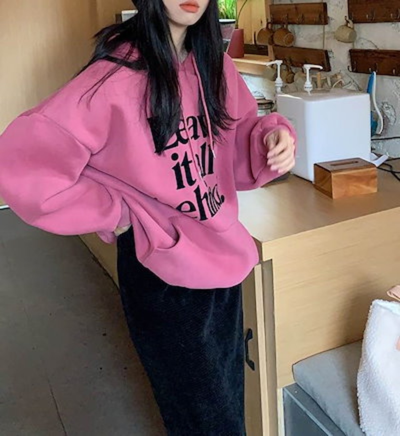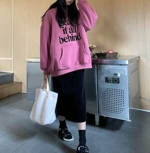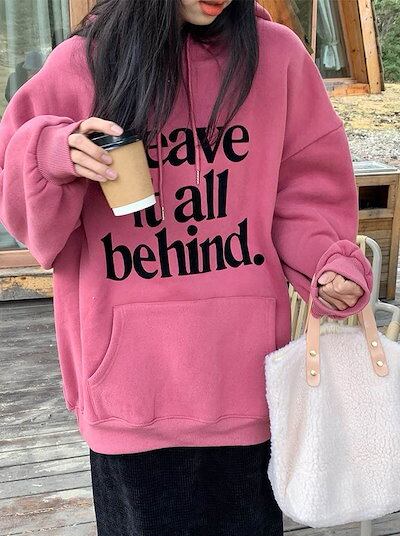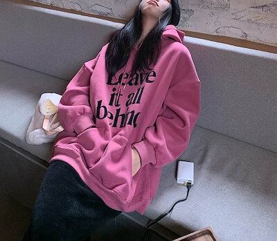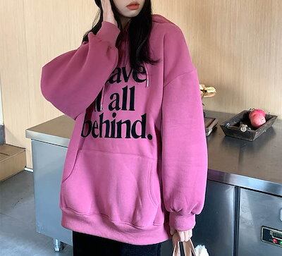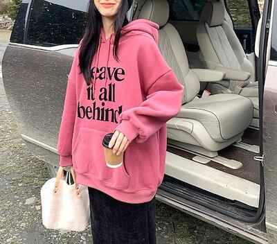 フード付き ロゴ スウェット パーカー レディース トップス プルオーバー 部屋着 丈長 長袖 ドロップショルダー フード ポケット ドロスト 厚手 かわいい 大人可愛い カジュアル おしゃれ こなれ