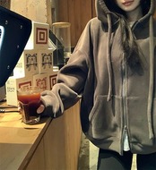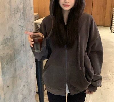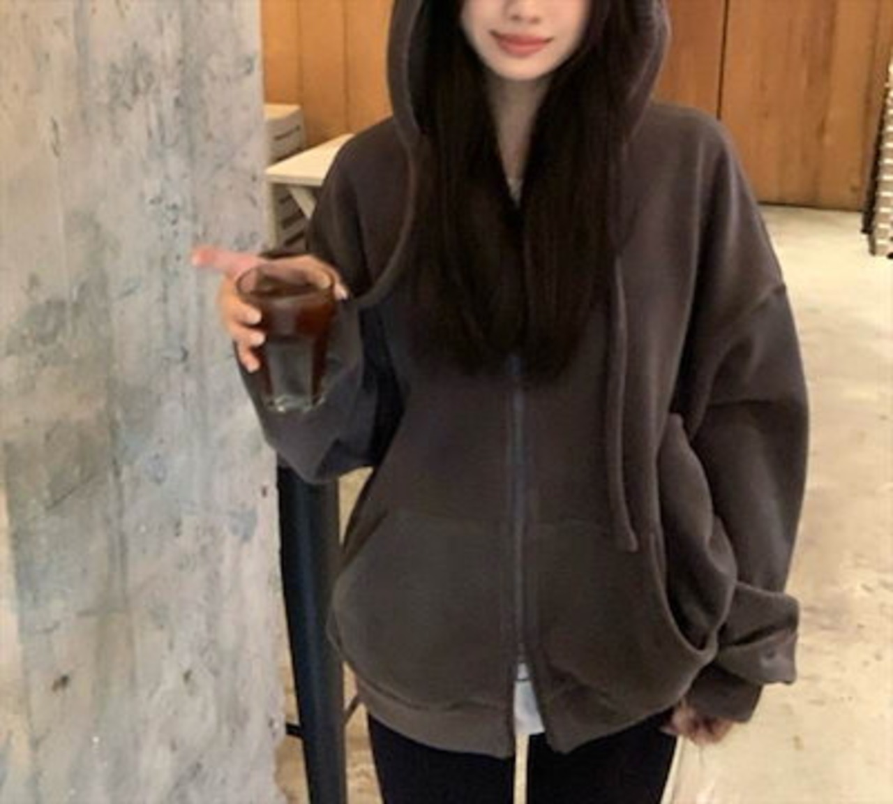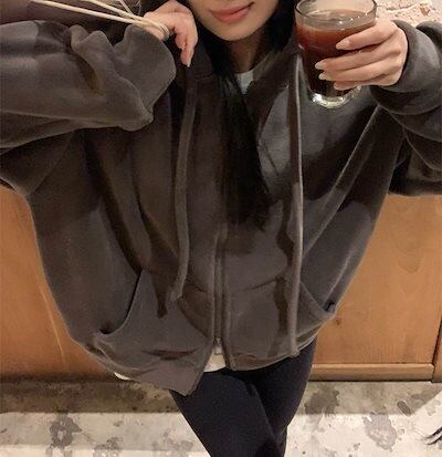 ベロア フード付き ジップアップ パーカー レディース トップス 羽織 丈長 長袖 ドロップショルダー フード ポケット 前開き ドロスト ベルベット かわいい 大人可愛い シンプル カジュアル おし