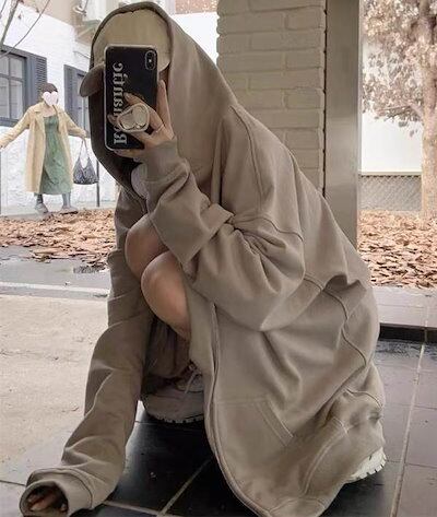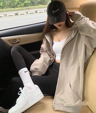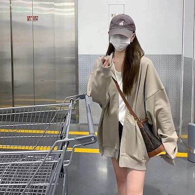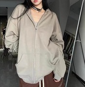 ジップアップ パーカー ジャケット レディース トップス アウター 上着 羽織 丈長 長袖 ドロップショルダー フード ファスナー ポケット 前開き 裏起毛 綿 かわいい 大人可愛い シンプル カジュ