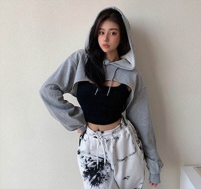 トップス パーカー ミニ丈 長袖 ストレート フード付き おしゃれ お洒落 かっこいい マニッシュ ボーイッシュ 個性的 クール 無地 春 夏 秋 10代 20代 レディース お出かけ 重ね着 サイズ