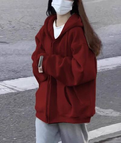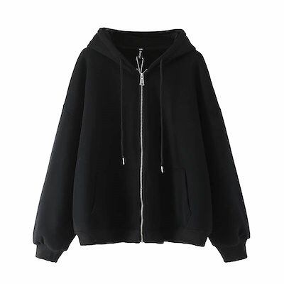 フード付き ジップアップ パーカー レディース トップス アウター 上着 丈長 長袖 ドロップショルダー フード ファスナー ポケット 前開き 薄手 スウェット かわいい 大人可愛い シンプル カジュ