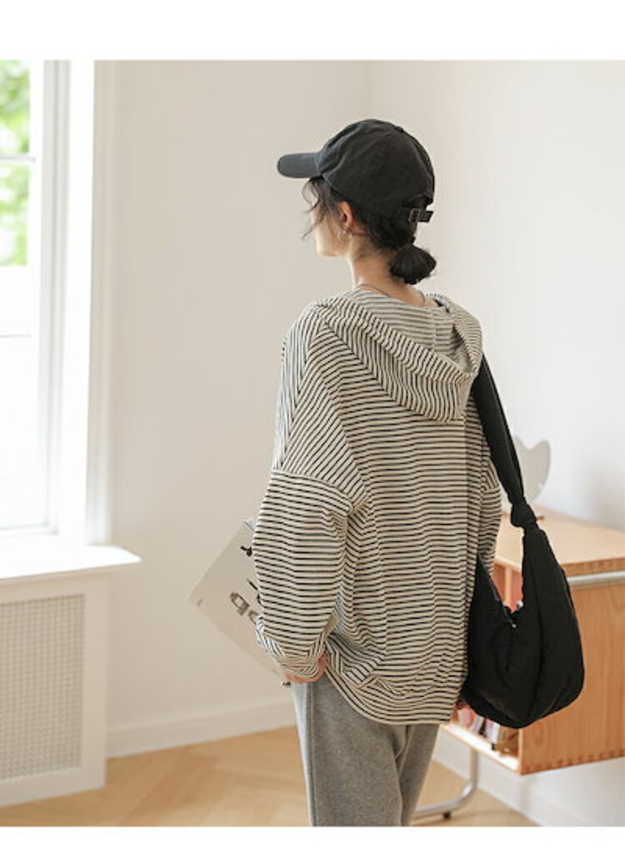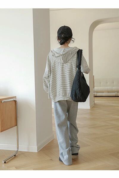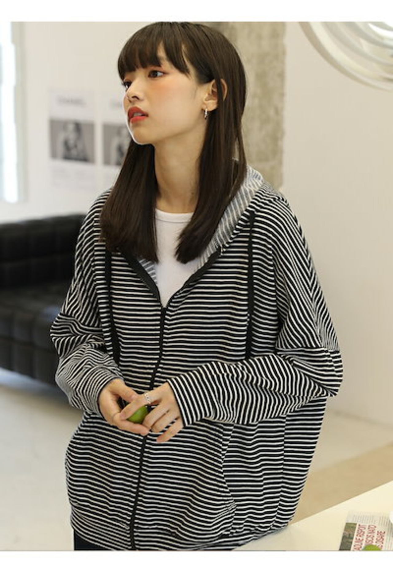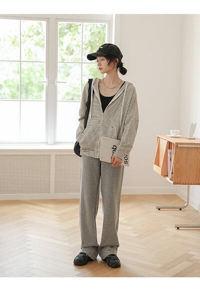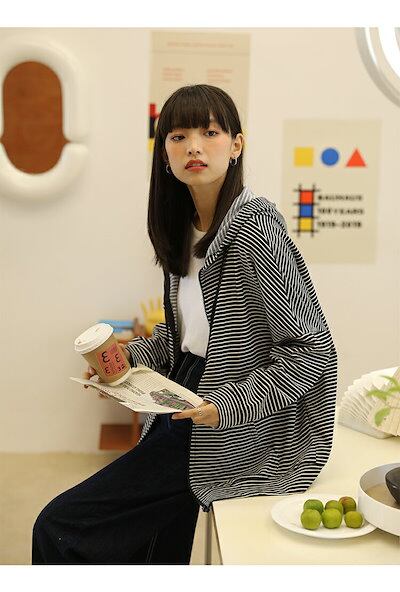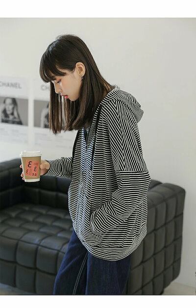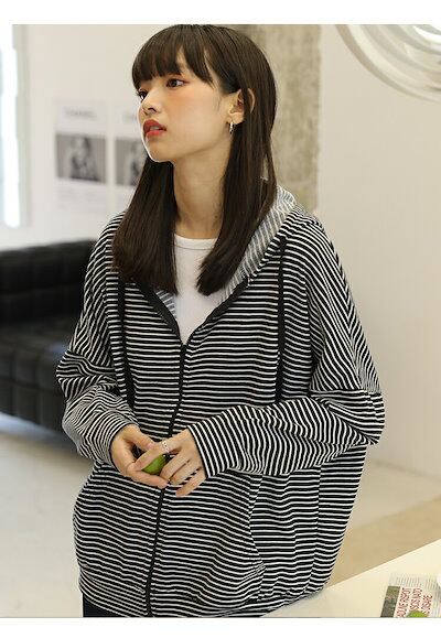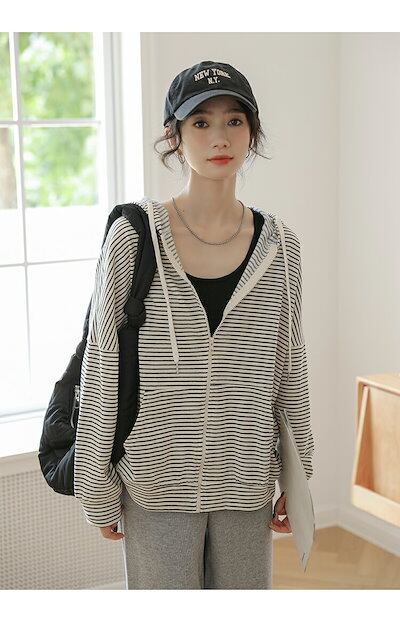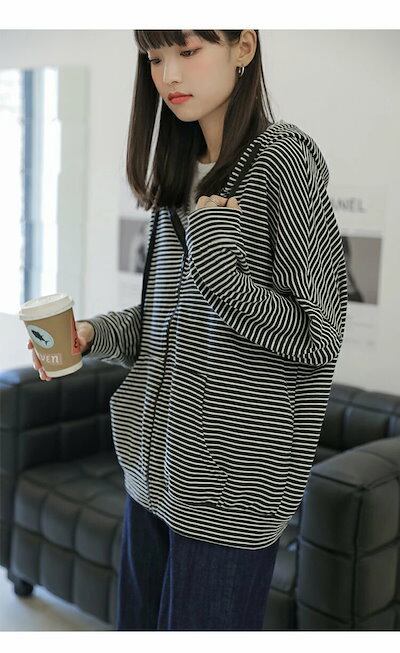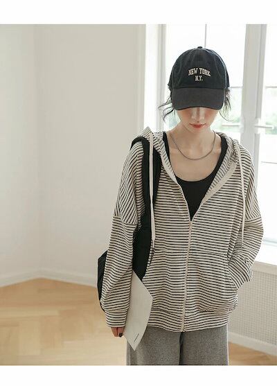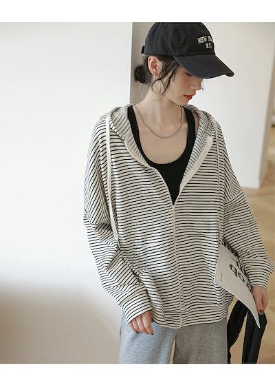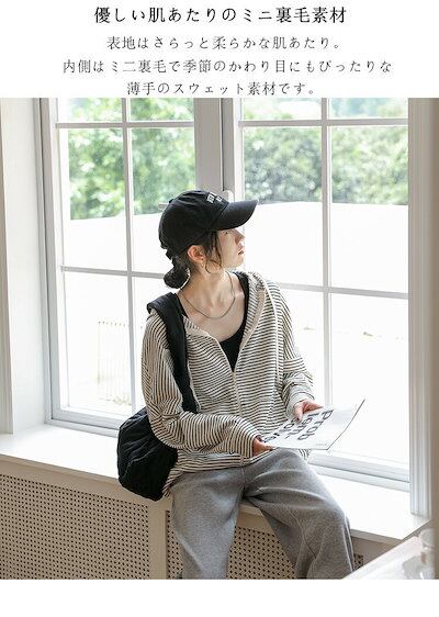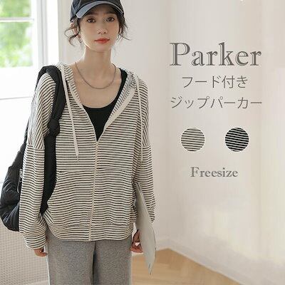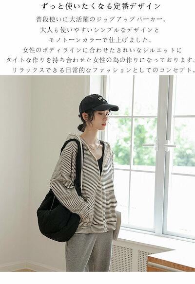 パーカー レディース 長袖 トップス ジップアップパーカー フード付き ジップパーカー ストライプ 綿 コットン 秋冬 ルームウェア ウォーキング かわいい シンプル おしゃれ カジュアル スリム 秋
