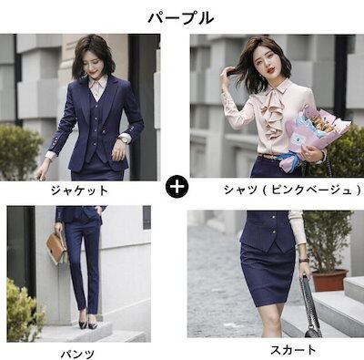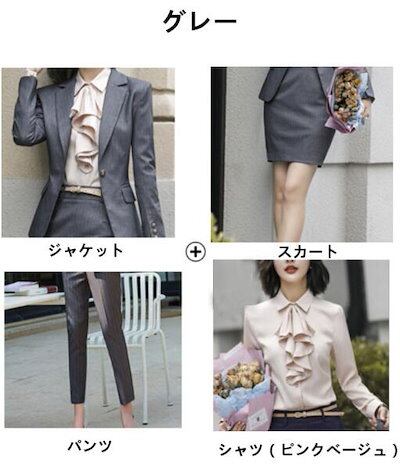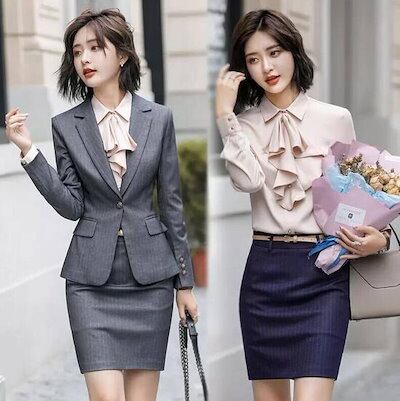 レディース スーツセット パンツセット/スカートセット 20代 30代 40代 ストライプ柄 フレアワイシャツ フェミニン 事務服 フォーマル 制服OL ビジネス 入学式 卒業式 通勤 スーツジャケッ