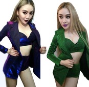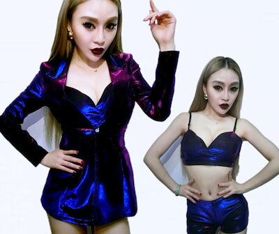 レディース スーツセットダンス衣装 ショート丈パンツ クラブ舞台衣装 光沢 ビスチェ 3点スーツセット ジャズダンス ヒップホップダンス ジャケット パンタロン フレアパンツ DJ 結婚式DS