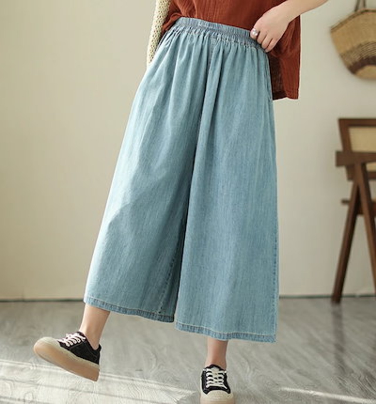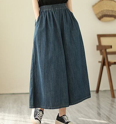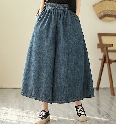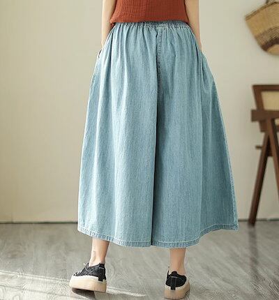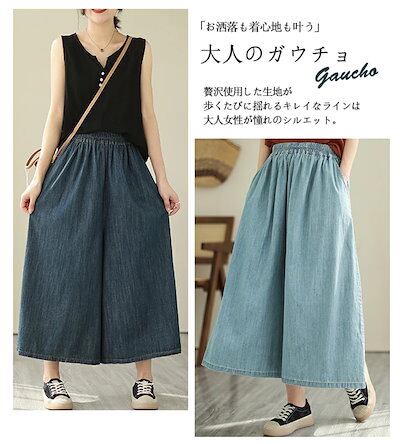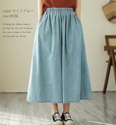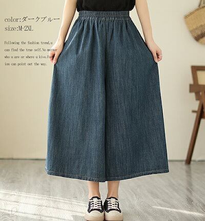 ガウチョパンツ デニム レディース ワイドパンツ 大きいサイズ パンツ ゆったり 夏 春 ガウチョ スカートみたい 九分丈 ワイド スカーチョ 低身長 ウェストゴム ポケット Aライン フレアパンツ