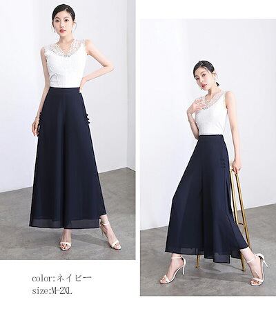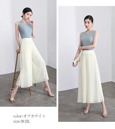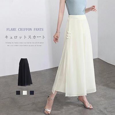 キュロット パンツ レディース きれいめ キュロットスカート ロング ふんわり aライン ガウチョパンツ スカート ダンス 春 夏 シフォンパンツ ガウチョ スカートみたい フレア バックゴム スリッ