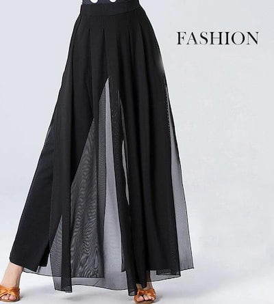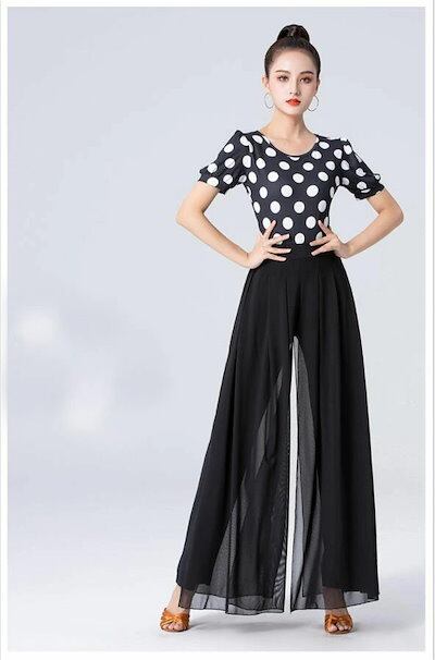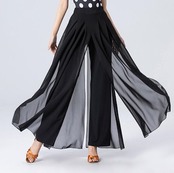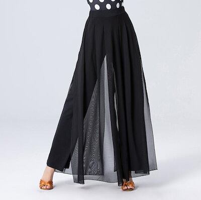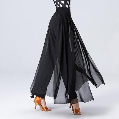 ダンス パンツ ラテン モダンダンス 社交ダンス ロング丈 パンツ ストレート 二重生地 スリット シフォン ワイドパンツ フレア 飄逸 スカート風 ふんわり レディース 大人 ハイウエスト 社交ダン