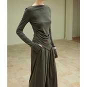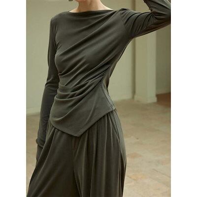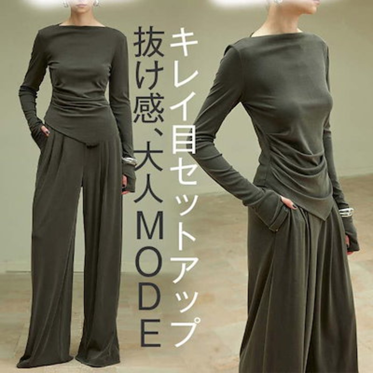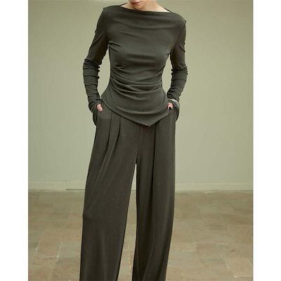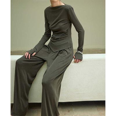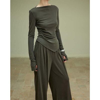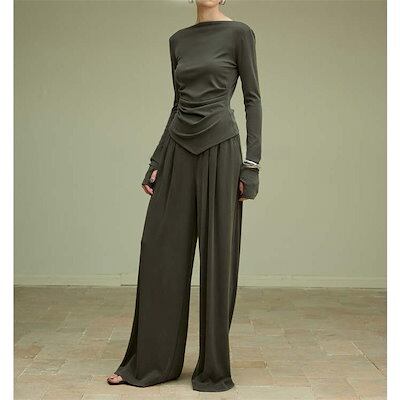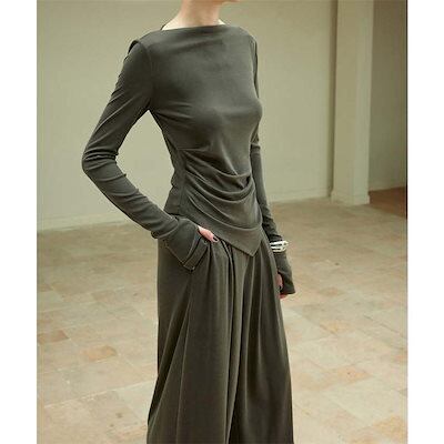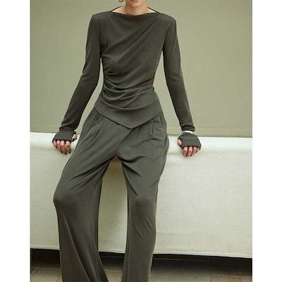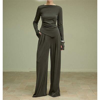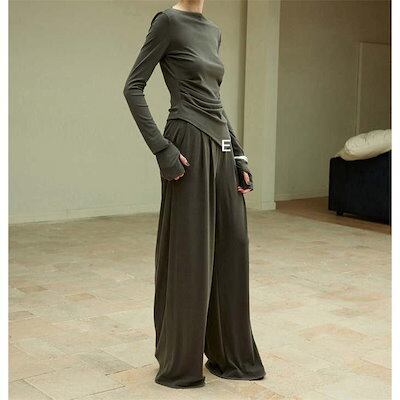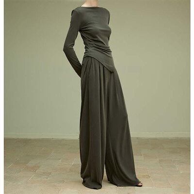 ニット セットアップ レディース 長袖 パンツスーツ ロング カットソー パンツ ロングパンツ ワイドパンツ フレアパンツ ガチョウパンツ ニットソー 薄手ニット
