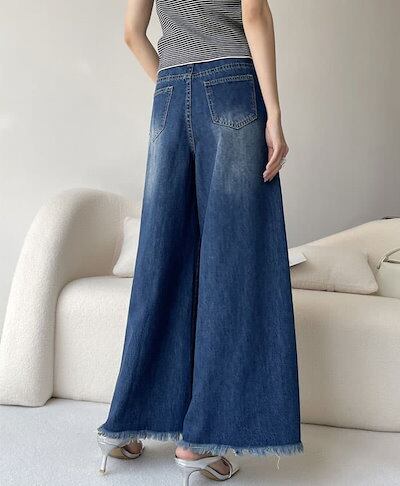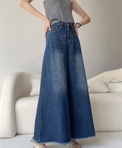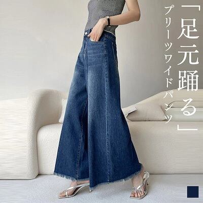 ワイドパンツ 春秋 タックパンツ デニム パンツ レディース フレアパンツ タックワイドパンツ 卒業式 入学式 ボトムス オフィスカジュアル ロング ワイド タック きれいめ 無地 大きいサイズ 上品
