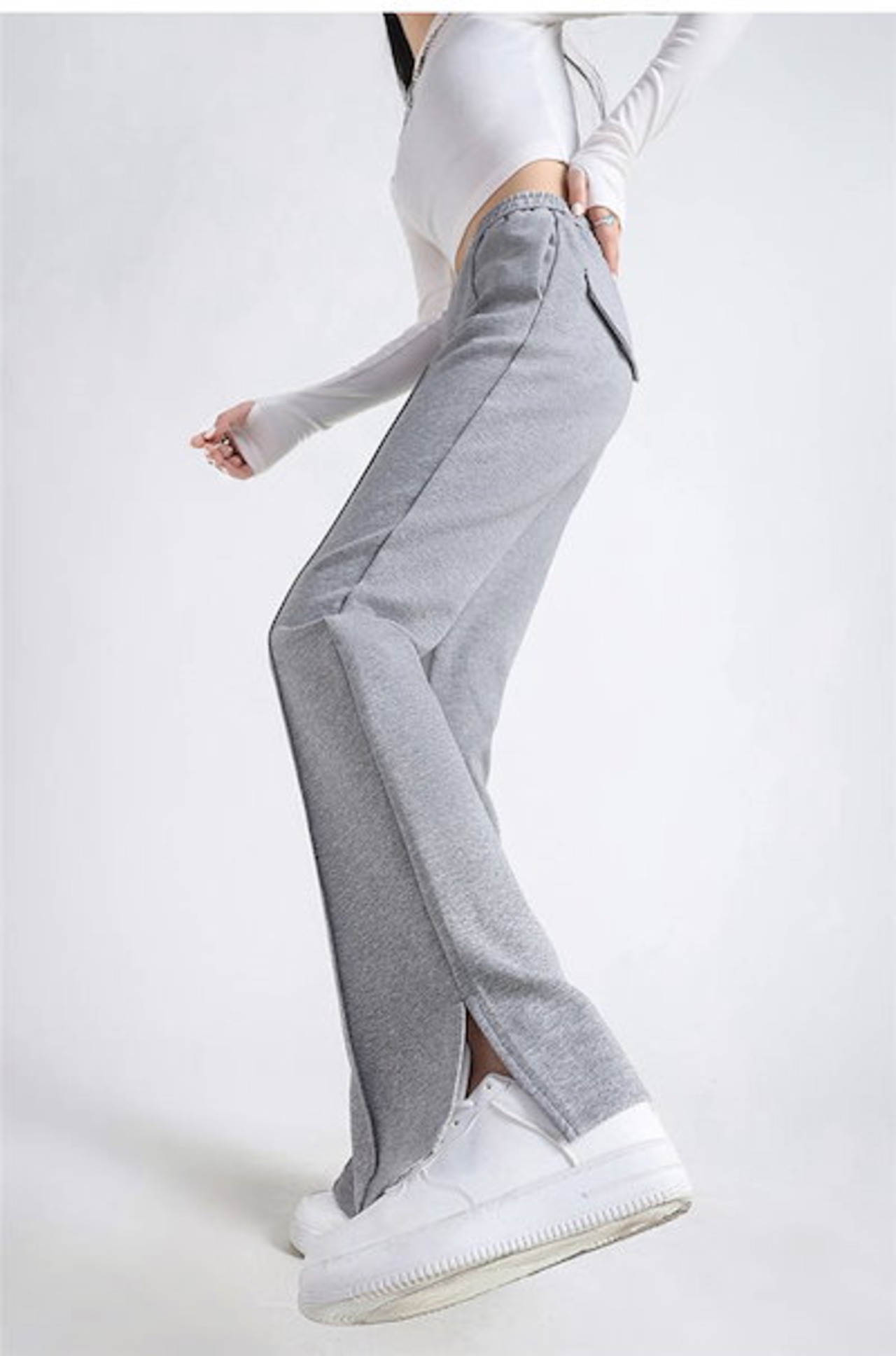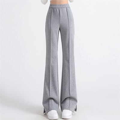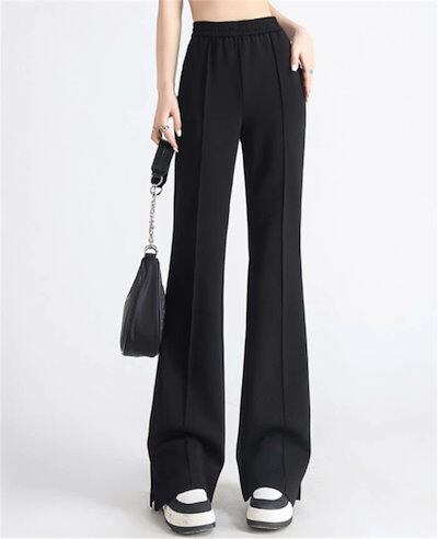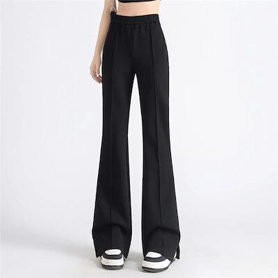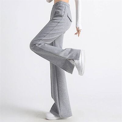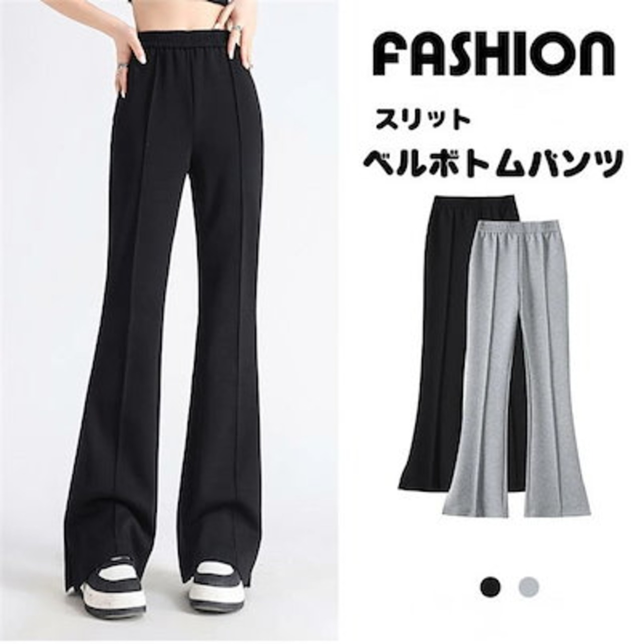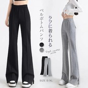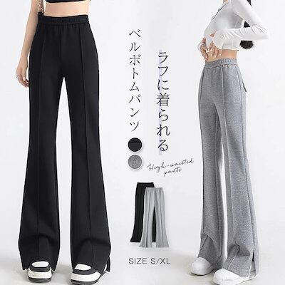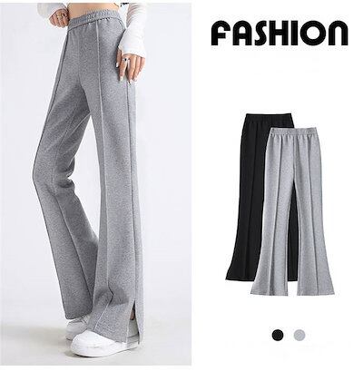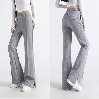 ベルボトム レディース スウェット パンツ スリット ストレッチ パンツ フレアパンツ ベルボトムパンツ パンタロン イージーパンツ レトロ モード おしゃれ シンプル 美脚パンツ 美脚ライン 脚長効