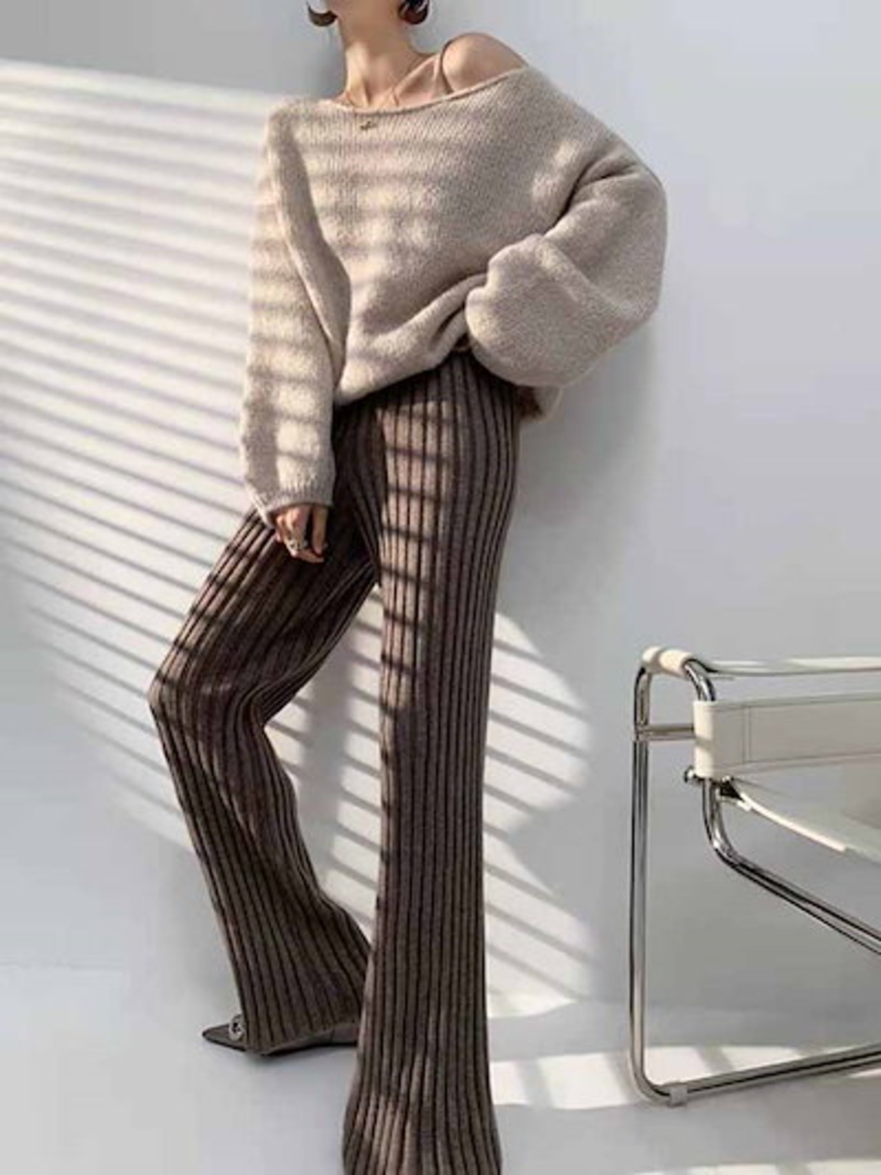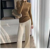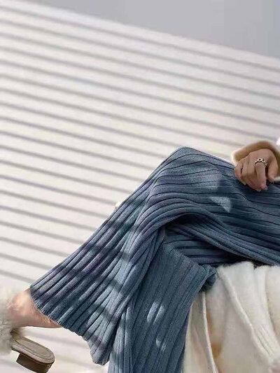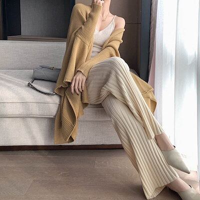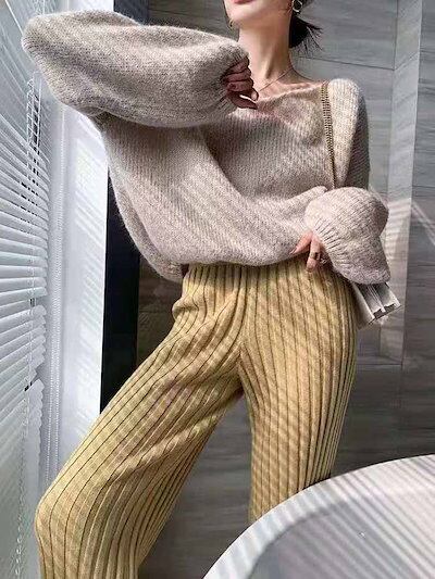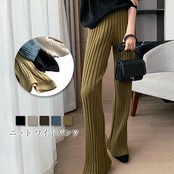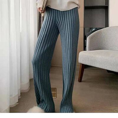 ニットパンツ レディース フレアパンツ ボトムス パンツ リブニット ロングニット パンツ ワイドパンツ レディース ロングパンツ ニットパンツ リラックスパンツ ボトムス ハイウエスト 体型カバー