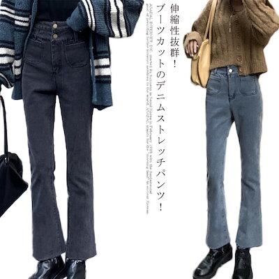デニム パンツ レディース スキニーデニム ブーツカット フレアパンツ 裾フレア 裾フリンジ 九分丈 春夏 秋冬 大きいサイズ ジーンズ ストレッチ ポケット