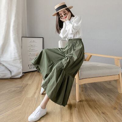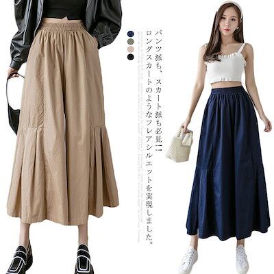 ロング丈 レディースパンツ ワイドパンツ フレアパンツ カジュアルパンツ サマーパンツ ゆったり ボトムス カジュアル ネイビー 春夏 ロング丈 落ち感 きれいめ 綿麻混 おしゃれ 上品 楽ちん 着?