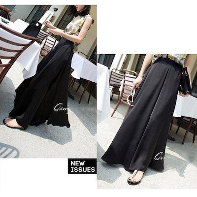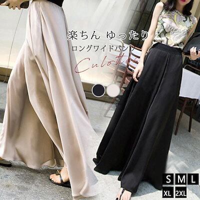 ワイドパンツ レディース ボトムス ガウチョパンツ ロング丈 シフォン 無地 フレア 体型カバー 着痩せ おしゃれ 美脚 通勤 OL 旅 上品 20代 30代 40代