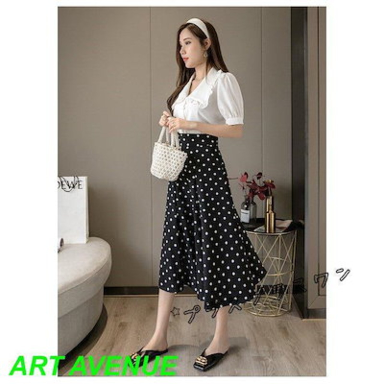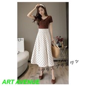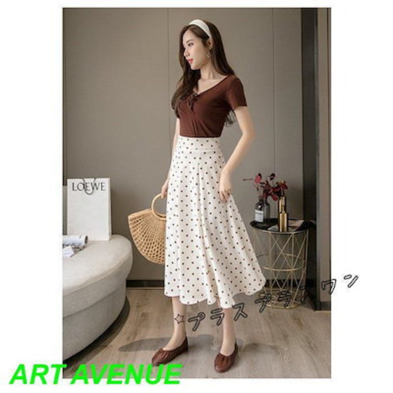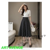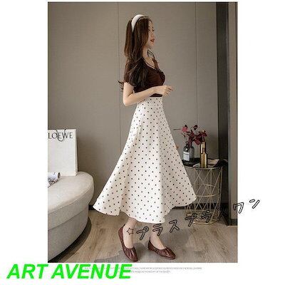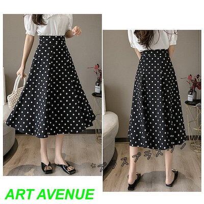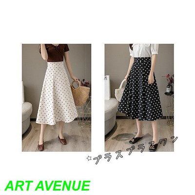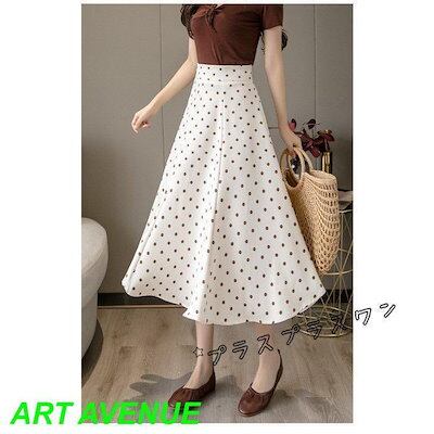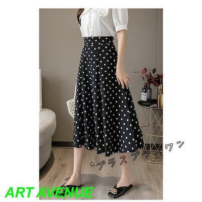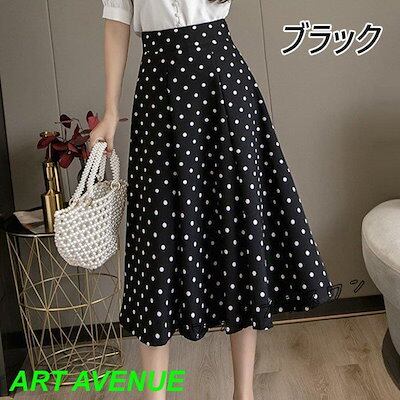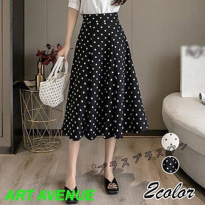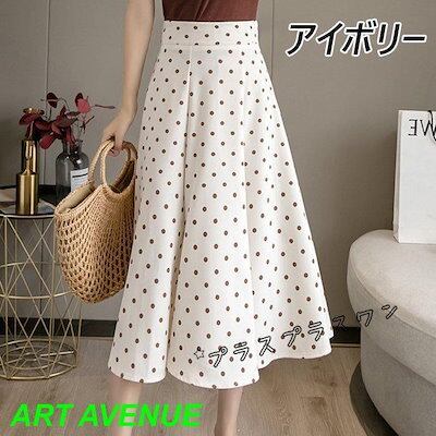 ?売促? スカート レディース 春夏秋 膝丈スカート ドット柄フレアスカート ロングスカート Aライン 体型カバー ボトムス おしゃれ 通勤 お出かけ オシャレ大人可愛い