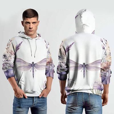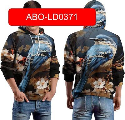メンズ 小さいサイズ 鳥柄 パーカー 3Dプリント フルオーバー ボタニカルモチーフ 長袖 男女兼用 レディース ポケット付き フード付き ドローストリング付き 春秋用 カジュアル 流行り 視覚的めま