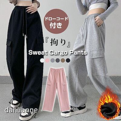 スウェット レディース カーゴパンツ 裏起毛 暖かい ボトムス 2way リラックス ゆったり 柔らか ウエストゴム ドローコード付き ポケット