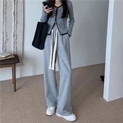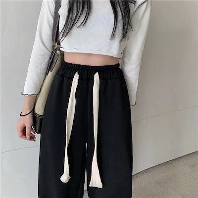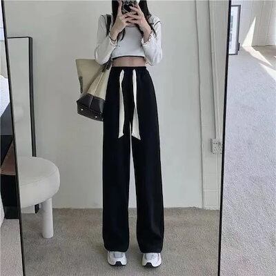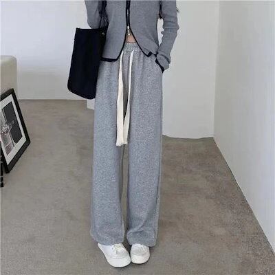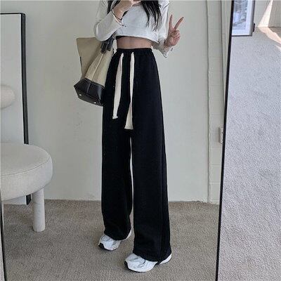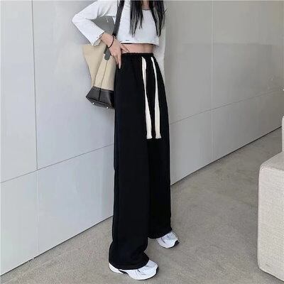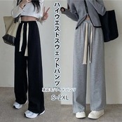 ひんやりボトムス 裏起毛 スウェットパンツ レディース 新作 ハイウエスト ストレート ズボン ゆったり ワイドパンツ カジュアルズボン