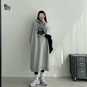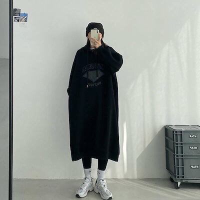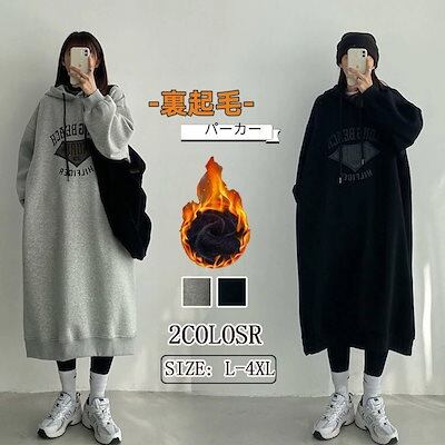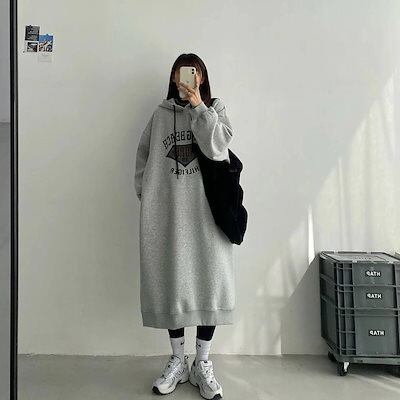 パーカー 裏起毛パンツ 厚手 スウェット スウエットセミロング丈 ゆったり長袖の ワンピース フード付き膝下丈 レディース ロング丈 プルオーバー ロンT 福袋 25福袋