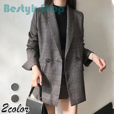 テーラード テーラードジャケット ブレザー コート レディース 秋新作 長袖 オシャレチェック柄 スーツ オフィス 30代 アウター カジュアル 通勤OL 40代50代