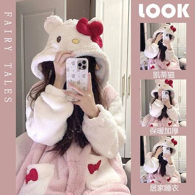 本日の限定商品着ぐるみパジャマ パジャマ ルームウェア パジャマ レディース もこもこパジャマ かわいいサンゴのベルベットのパジャマ 冬用中わた入り厚手あったかフランネルフード付きホームスーツ