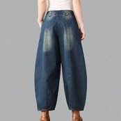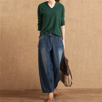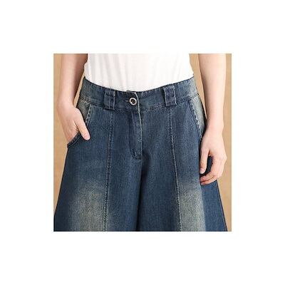 レディース デニムパンツ ガウチョパンツ ワイドパンツ ロング ハイウェスト バギーパンツ 大きいサイズ ゆったり お洒落 体型カバー