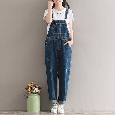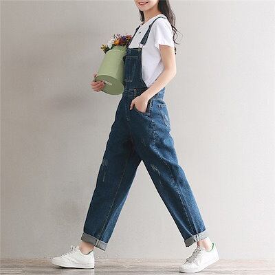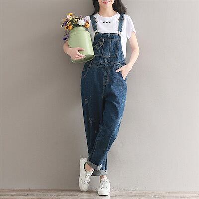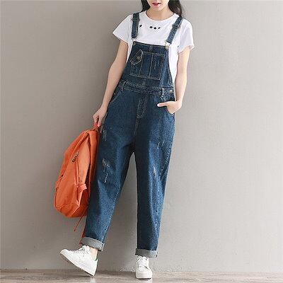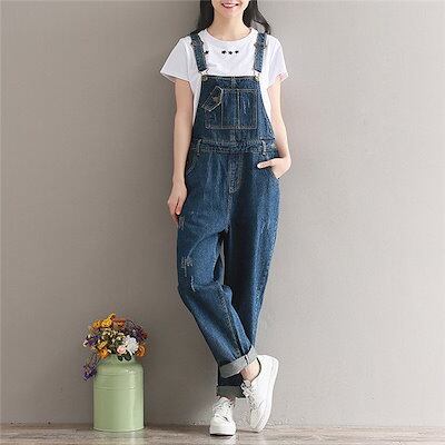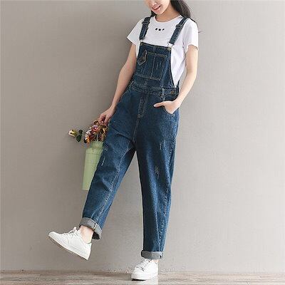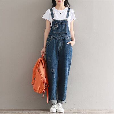 オーバーオール レディース デニムパンツ 通販 サロペット オールインワン ポケット付き ワイドパンツ バギーパンツ ゆったり おしゃれ テーパード