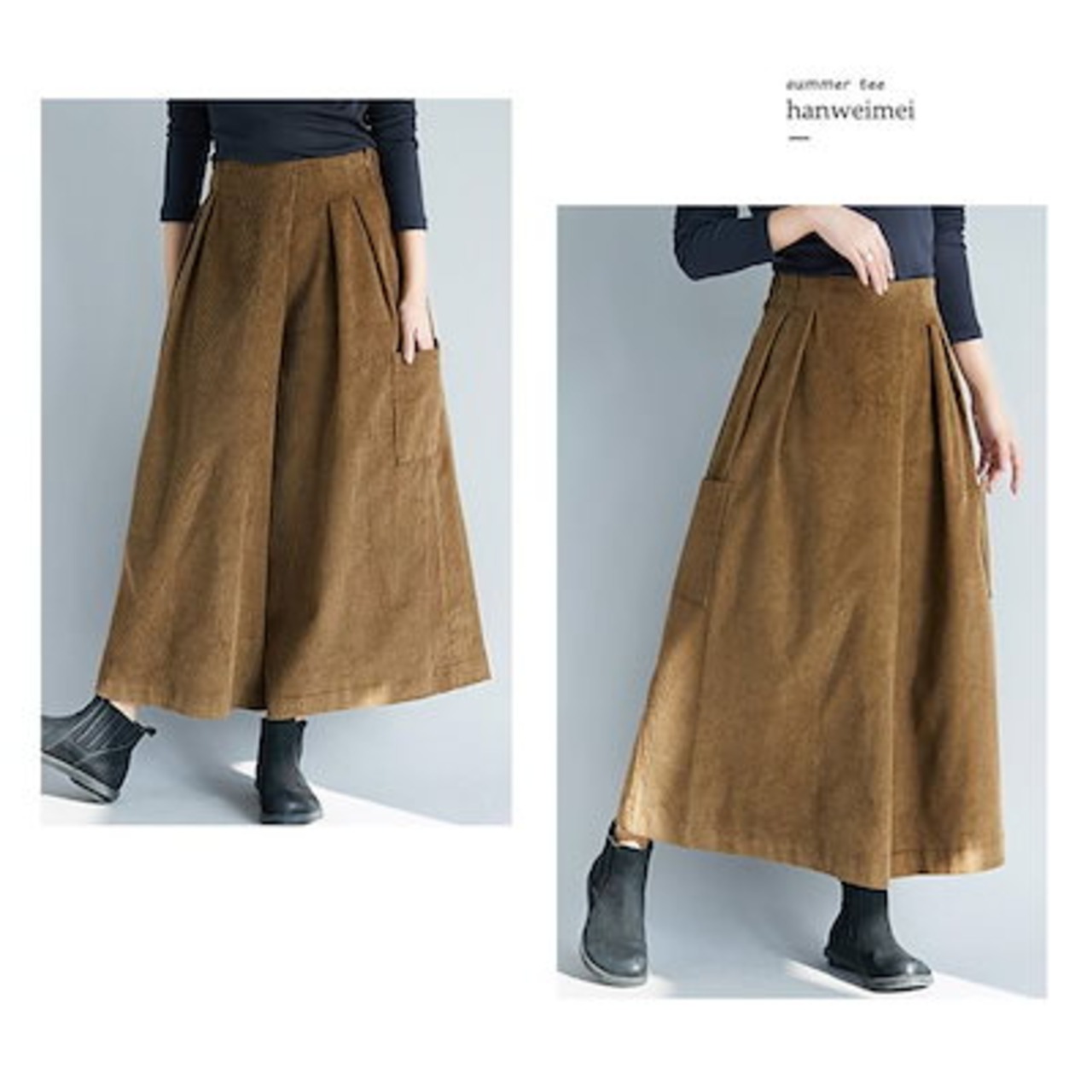 ワイドパンツ コーデュロイ ボトムス 体型カバー レディース ロング丈 コーデュロイ バギーパンツ