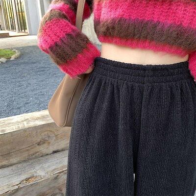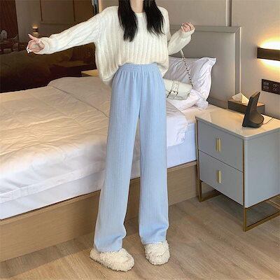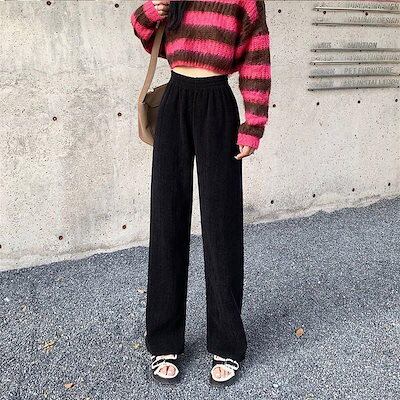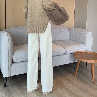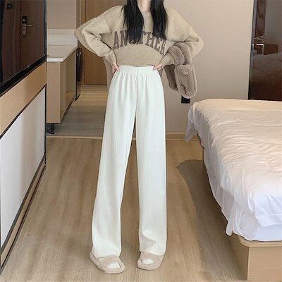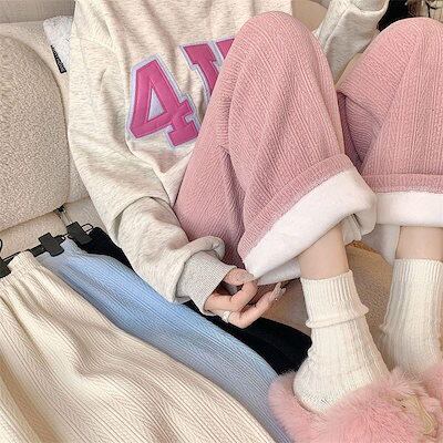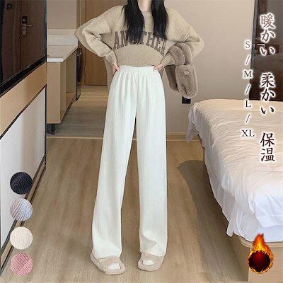 万能流行感 ワイドパンツ レディース 新作 バギーパンツ裏起毛 プリーツパンツ 秋冬 イージーパンツ ウエストゴム ボトムス 保温 暖かい