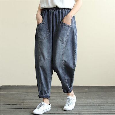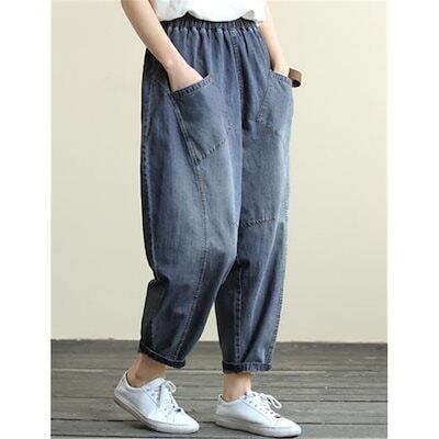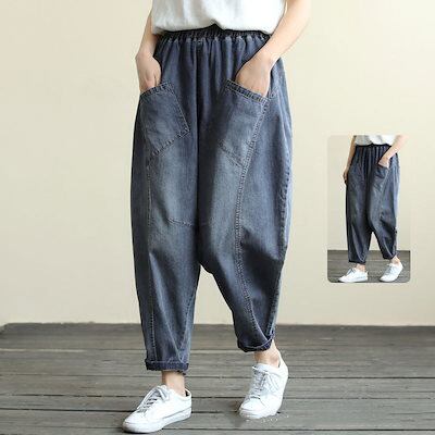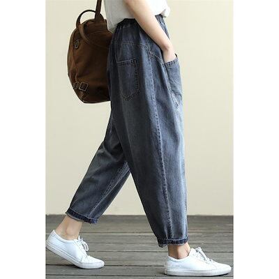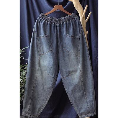パンツ デニム レディース 春秋 ジーンズ ズボン 九分丈 ボトムス ジーパン ゆったり テーパードパンツ ワイド バギーパンツ ストレートパンツ