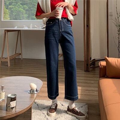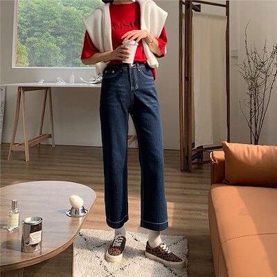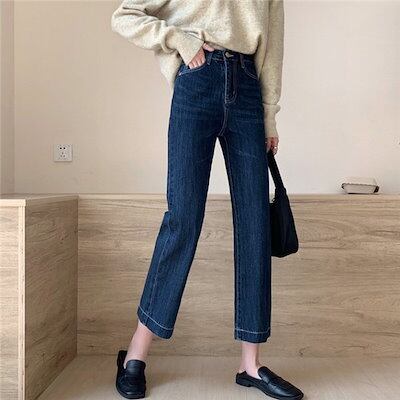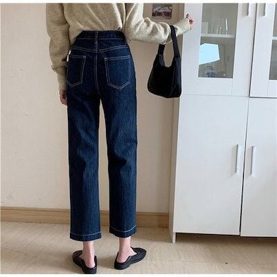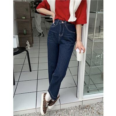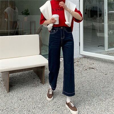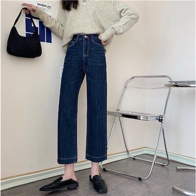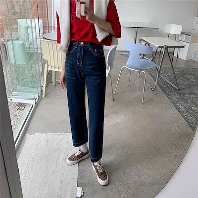 デニムパンツ レディース 秋 九分丈 ハイウエスト ボトムス ジーンズ ズボン ジーパン ストレートパンツ ビジネス ワイド バギーパンツ ロング丈