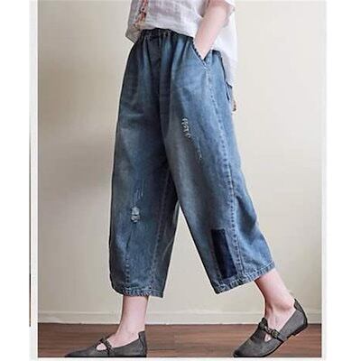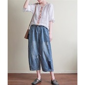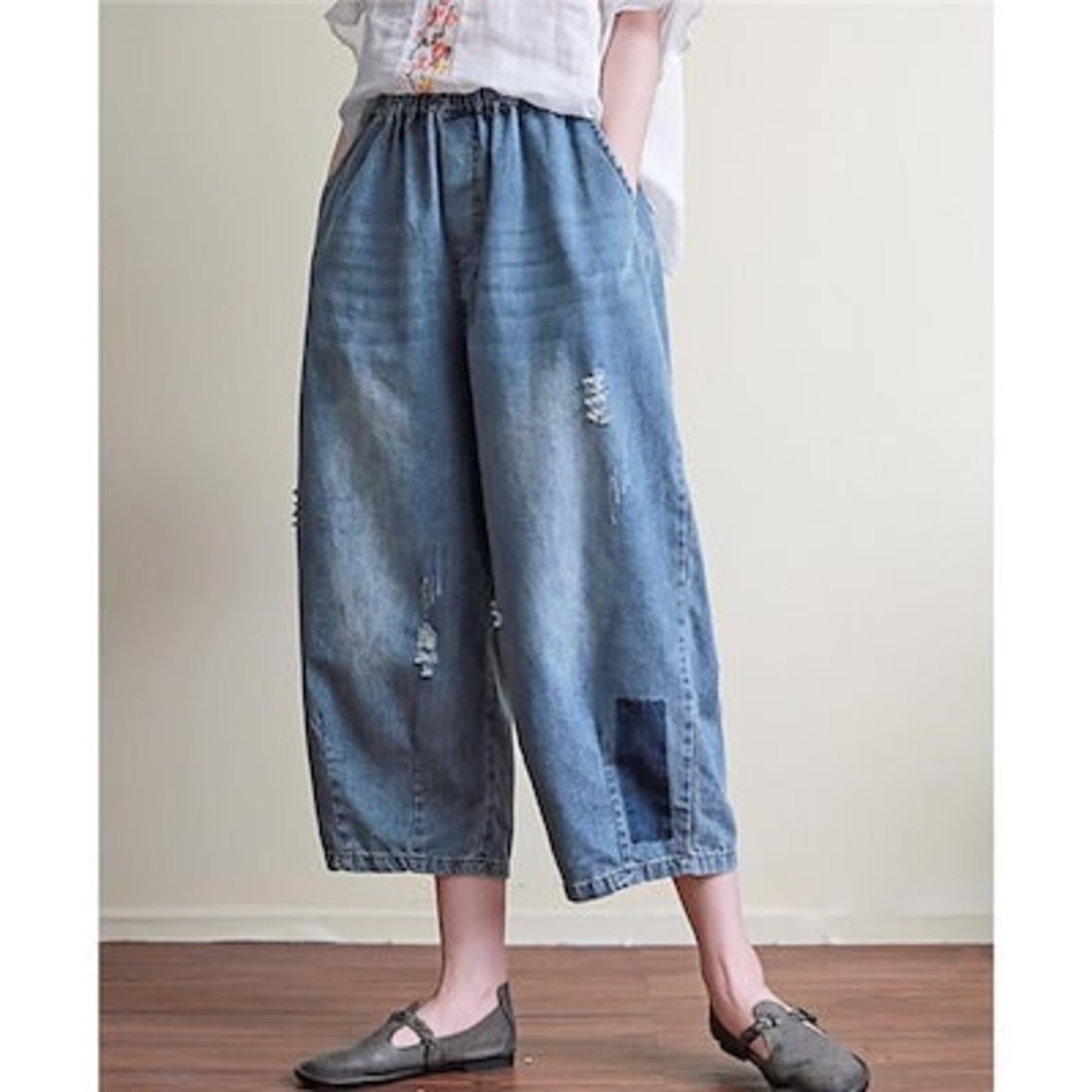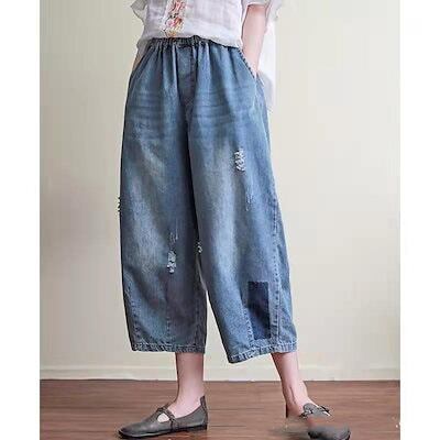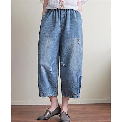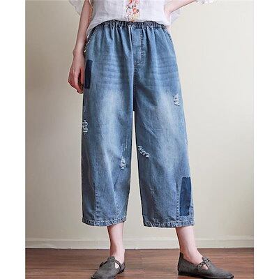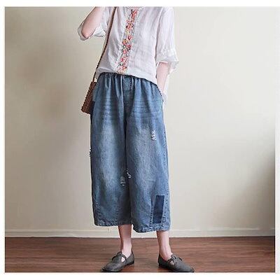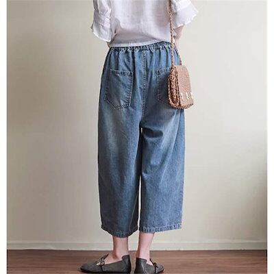パンツ デニム レディース 春秋 七分丈 ジーンズ ズボン ボトムス ジーパン ゆったり ガウチョパンツ ワイド バギーパンツ ストレートパンツ