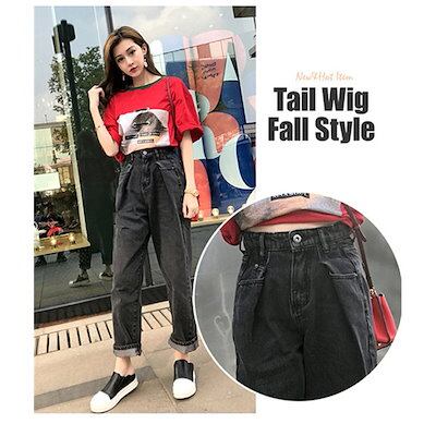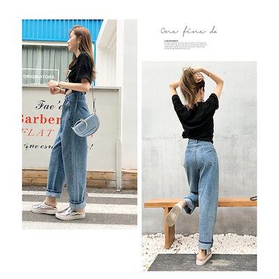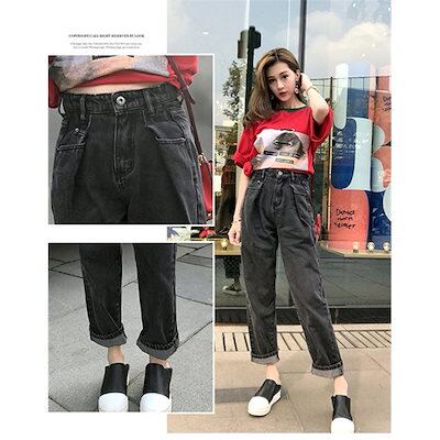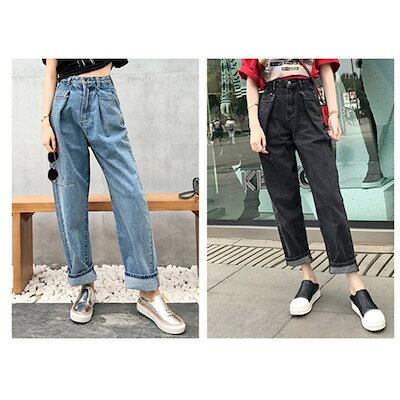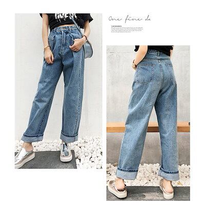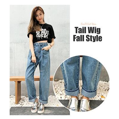 パンツ デニム レディース 春秋 ボトムス ズボン ジーンズ ワイド バギーパンツ ハイウエスト ゆったり タック ロング丈 ジーパン ストレート