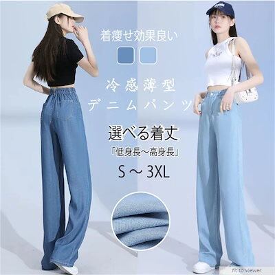 【国内発送】デニムワイドパンツ レディース ズボン ロング パンツ 夏 ゆったり 薄手 ハイウエスト ストレートワイドパンツ ボトムス 美脚 バギーパンツ シンプル 体型カバー ハイウェスト30%まで