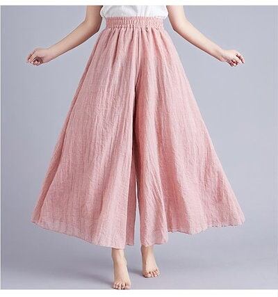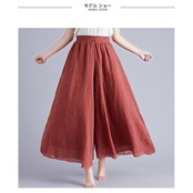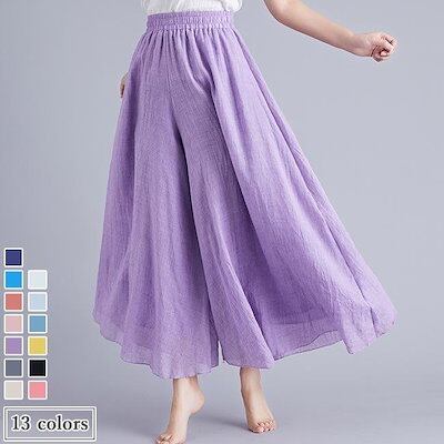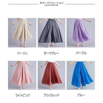 キュロット コットンリネン ワイドパンツ レディース キュロットスカート マキシ丈 麻 夏 バギーパンツ 体型カバー 薄手 涼しい レトロ