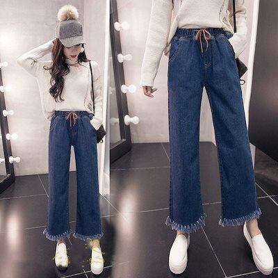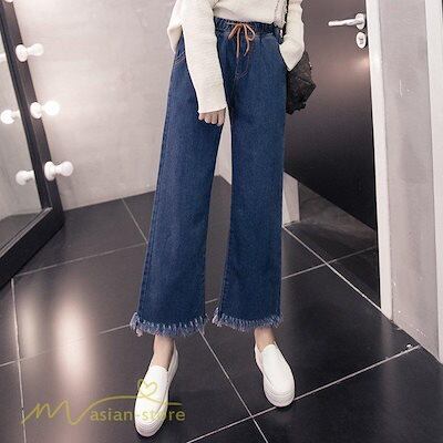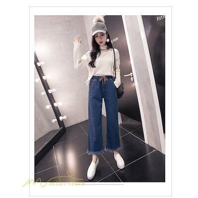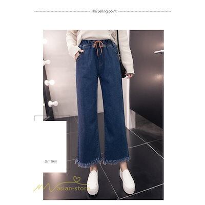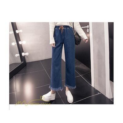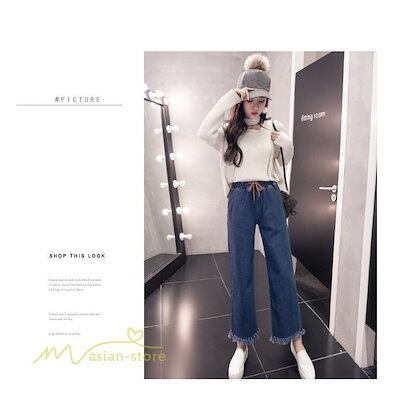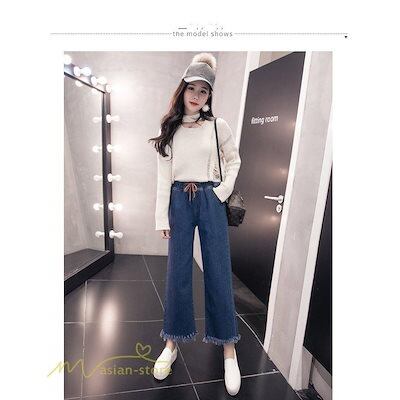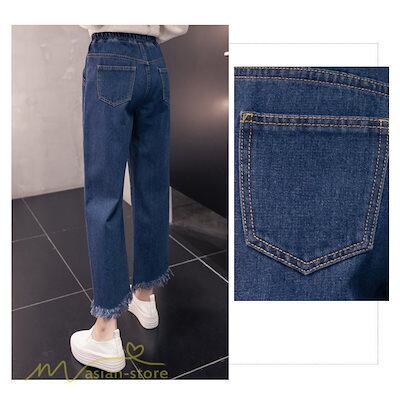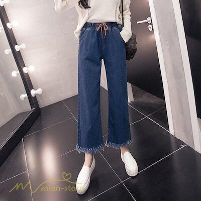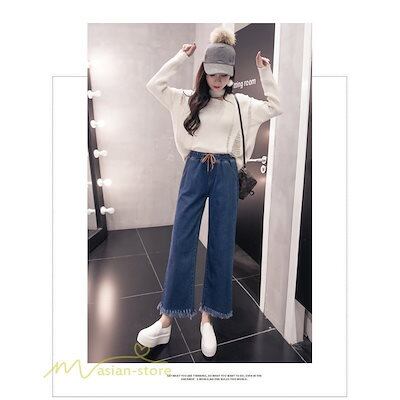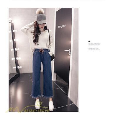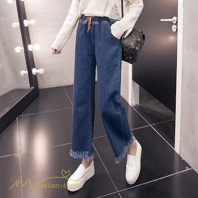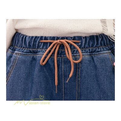 ジーンズバギーパンツ着痩せレディースデニムパンツロング丈日常感