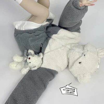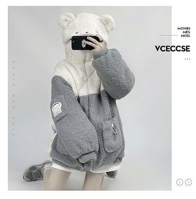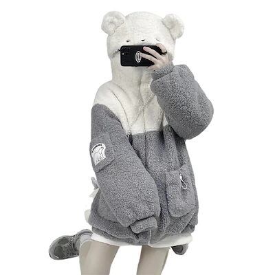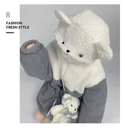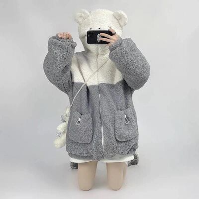 秋アウター 人気ボアアウター ブラッシュトップス 日系 可愛い ボアコート パーカー フレア ジップアウター 学生 レディース 厚手 キルティングアウター
