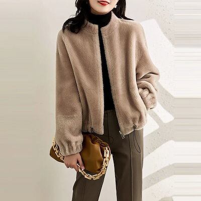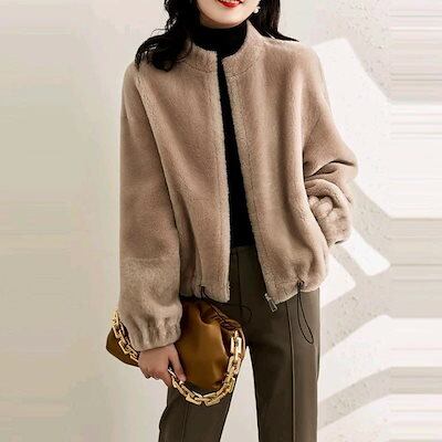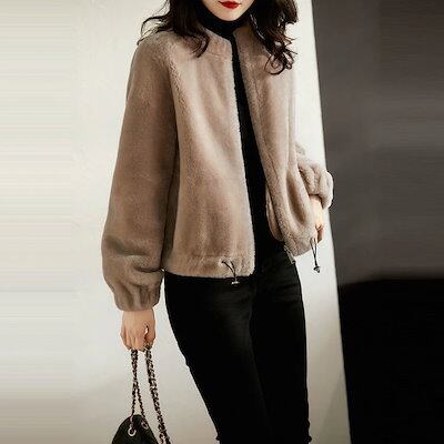 欧米 皮毛一体 立ち襟 ジャンバー 若見え ジャケット 気質 ウォーム 着痩せ ふわふわ トップス