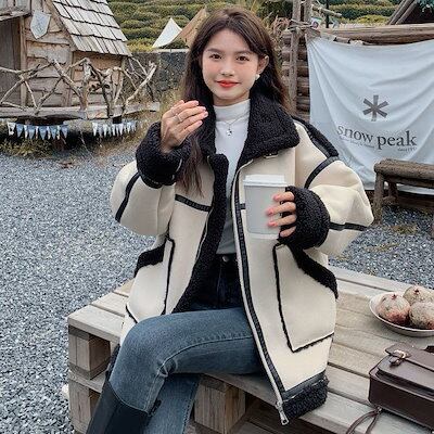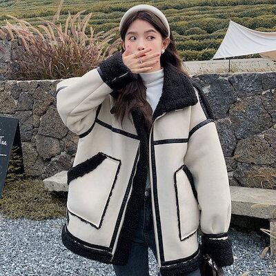 人気ボアアウター 冬人気 厚手 毛皮アウター裹起毛 韓国 コート レディース 防寒 暖かいファーアウタースウェット体型カバー百掛け 裹起毛ジャケット フリースで決まり!